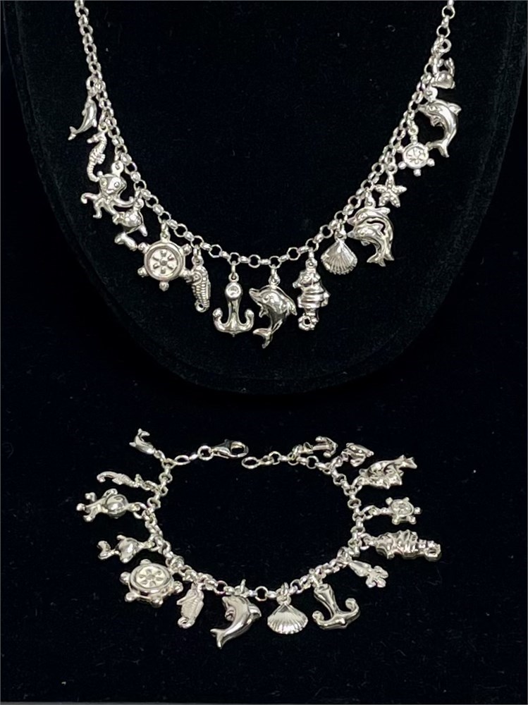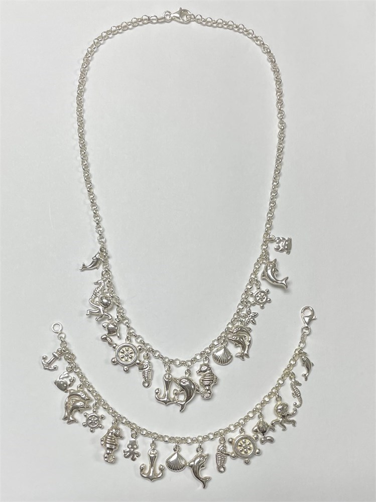 Sea Life Charm Necklace and Bracelet Set, Sterling Silver (37.8 g)