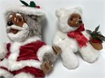 Santa, an elf, and a white bear with basket.  These bears have wood faces and are in good condition.  See photos for details.