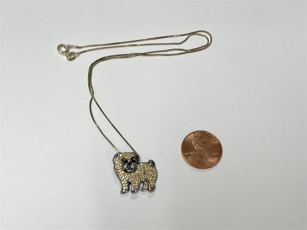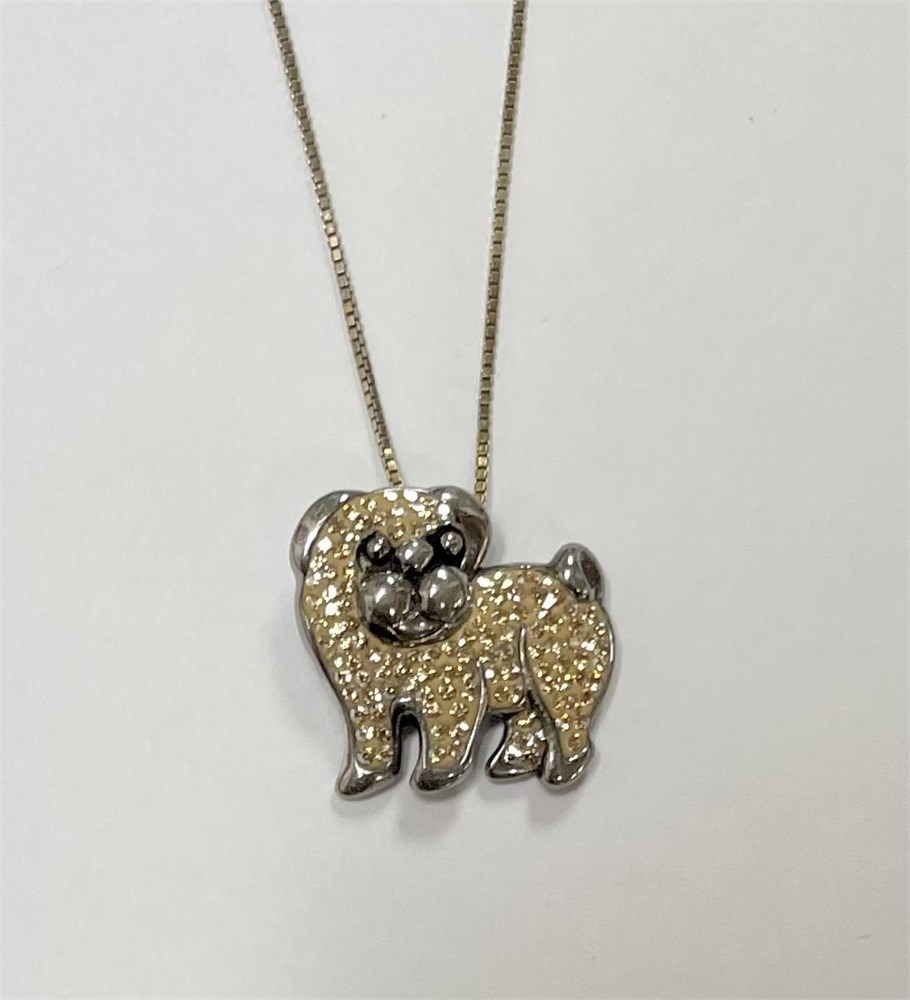A sparkly two-tone dog necklace with a 16" Italian chain.  Both pendant and chain are marked as sterling/925.