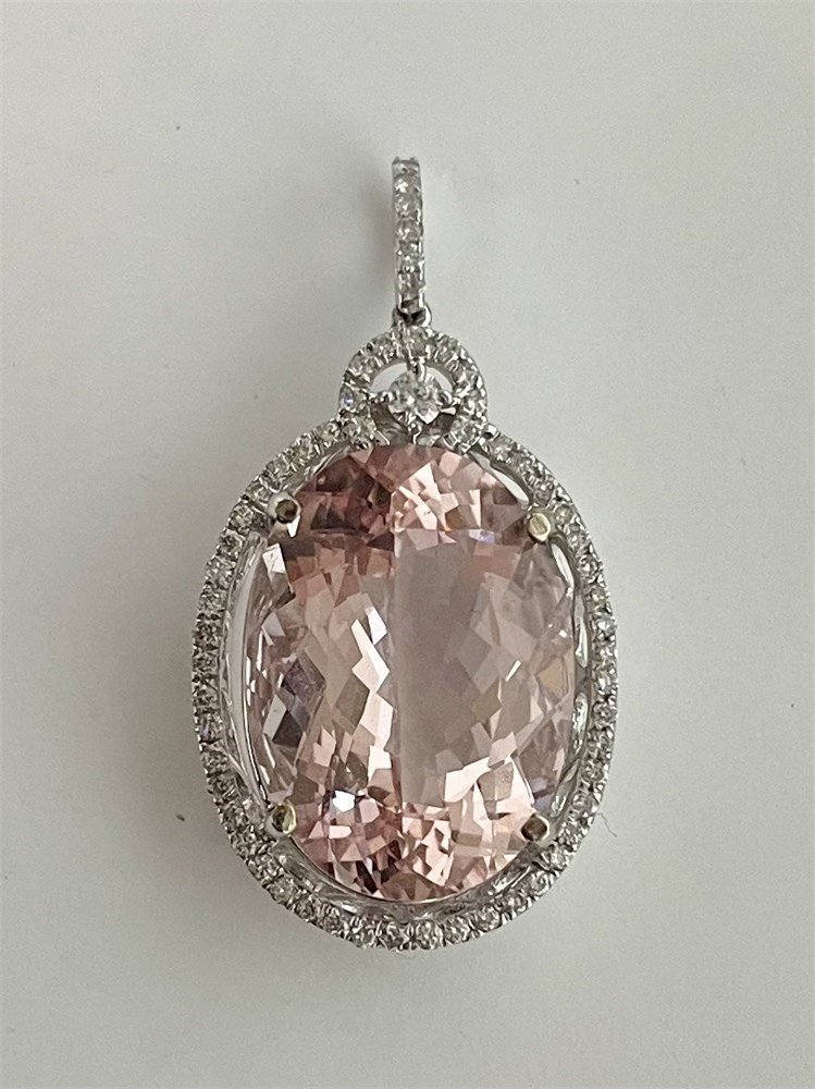 Morganite 18K White Gold Diamond Pendant (6.1 g)