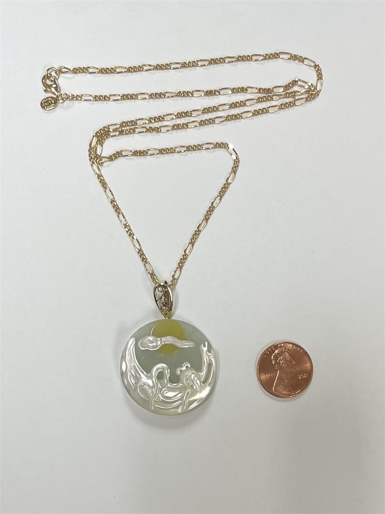 14K Jade and Mother of Pearl Pendant, with GE Chain