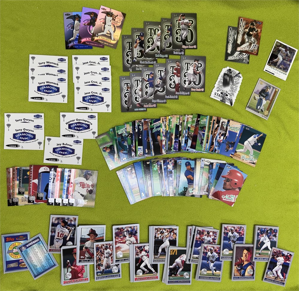 An assortment of baseball cards from 1998. Topps and Fleer Ultra. Some matching Diamond ink cards. Top 30 numbers 1,2,8,9,11,14,16,26,27,28,30.