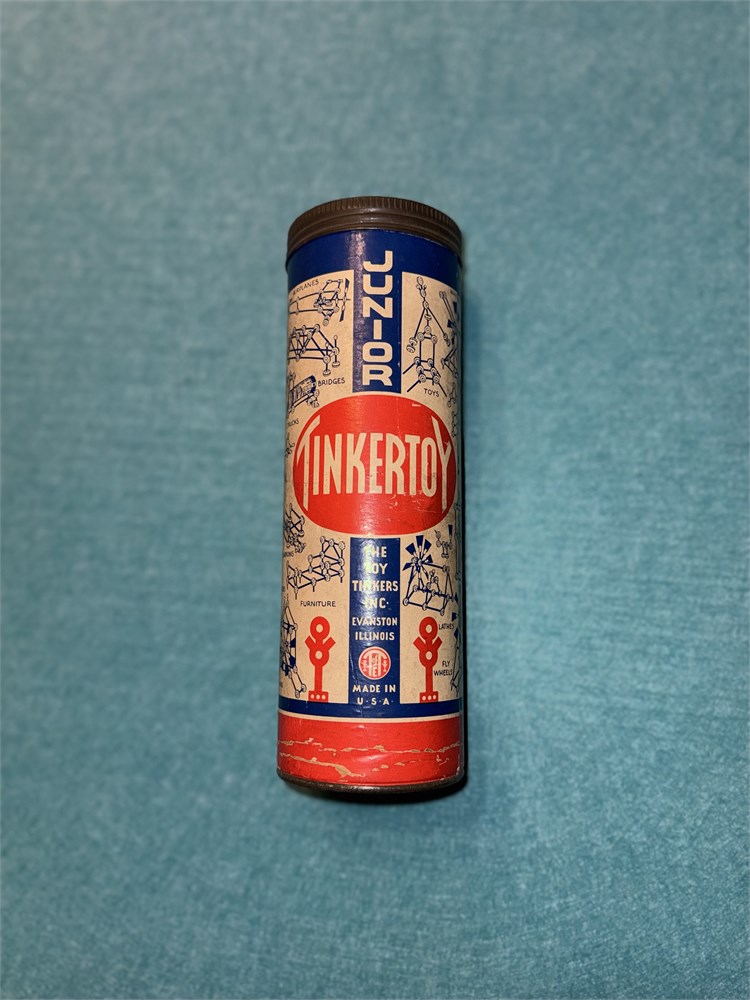 Original 1940’s Tinker Toy Set. All original pieces. Original canister and lid. Comes with instructions from 1940 and 1941. Neat addition to your vintage collection.