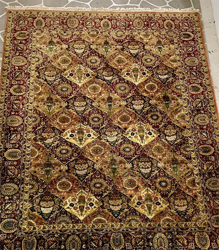 A large area rug, handmade in India by Obeetee, all wool pile.  9'x12' size.