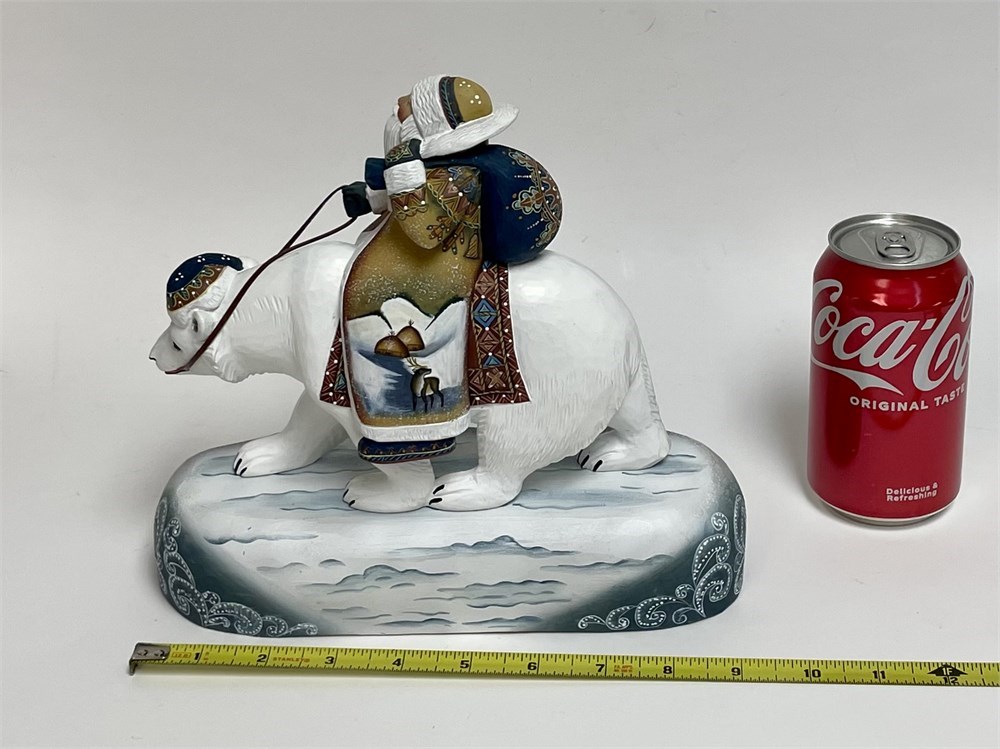 From the Arctic Collection limited edition, numbered 81/600, by G. DeBrekht Artistic Studios.  Santa Claus riding a polar bear, with lots of great hand painted details.  9 1/2" tall, good condition.