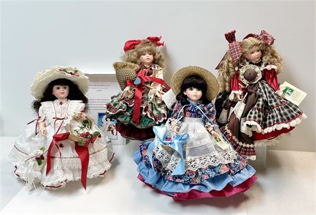 4 lovely dolls, about 14"-15" tall, each with Pittsburgh Originals tag.  "Cheri" also has a Chris Miller certificate from a 1995 Expo; limited edition of 100.  These are all pretty cute with their multi-layered skirts and many detailed touches.