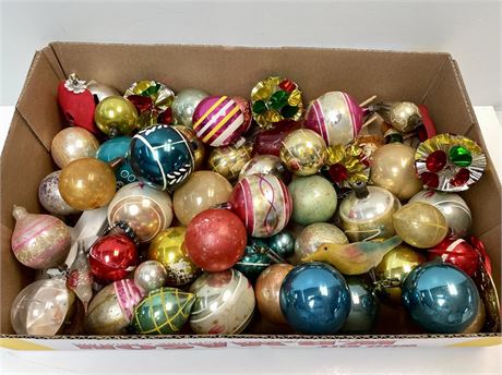 Mostly glass, and a few others.  Some have a lot of wear; others are better.  Always a cute display at Christmas.