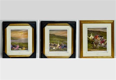 Community Spirit, Ireland, series of 3 prints: "Peace," "Faith," "Love" by Philip Gray.  Framed under glass, each hand signed by the artist, with COA on the back.  Published by Riverside Arts Ltd., Ireland.  Framed size 15" x 17".