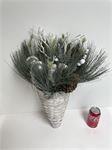 3' x 18" white Christmas tree, in box.  A winter arrangement in whitewashed wall basket.  And a nice black-and-white tablecloth or dresser scarf, good condition, quilt style but thin, a Pier One type item.