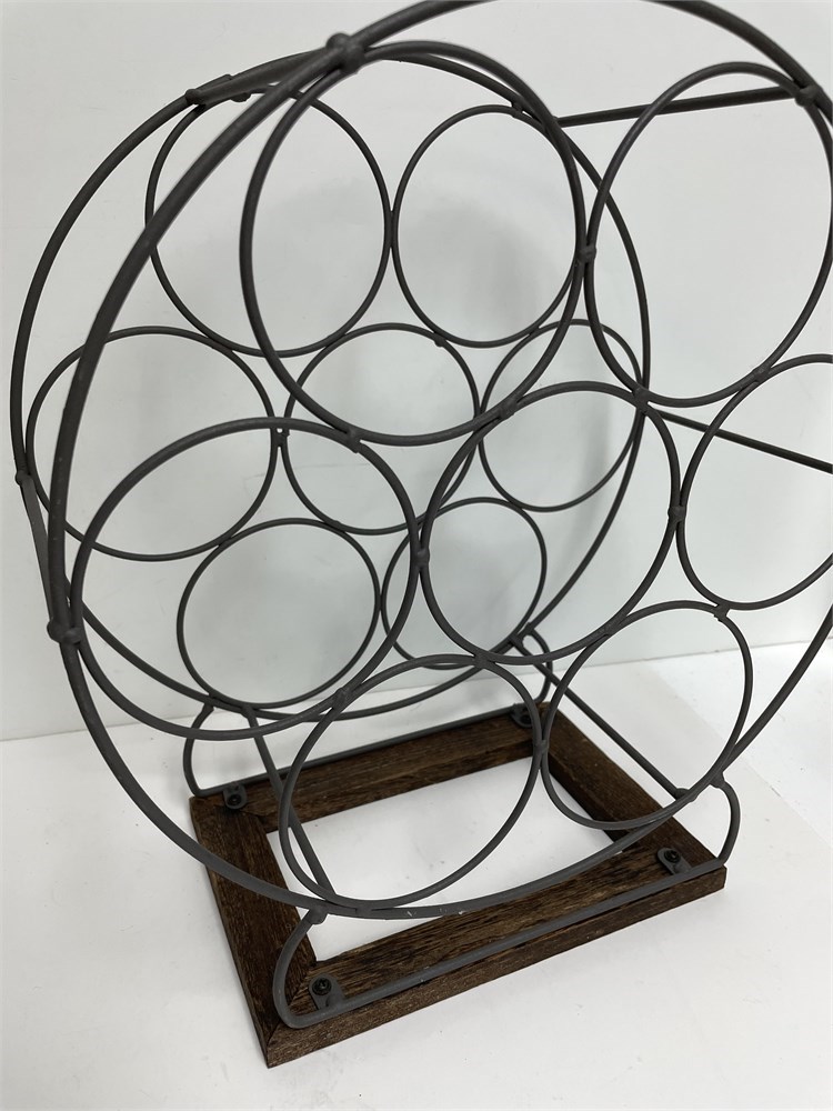 I know this is a wine bottle rack, but they have become popular recently as storage for the family's water bottles and travel cups.  This one is lightweight and modern.  Also in the lot is a nautical needlecraft picture, plus two picture frames - one inexpensive and one nicer.