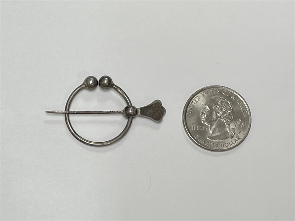 A 20th century small silver fibula brooch with Swedish import hallmarks.  Also marked as .830 silver.  Maker unknown.  A neat little item for a collection.