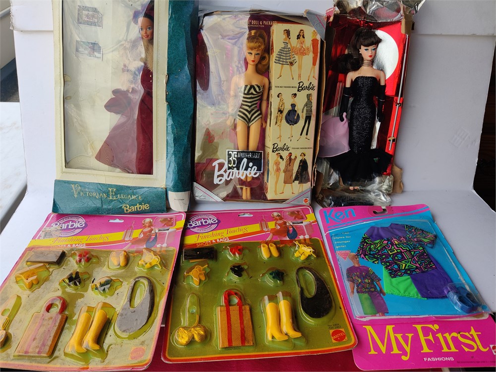 Lot of three Barbie dolls and three sets of accessories. The dolls look to be in good condition The boxes are very rough. The accessories are in fair condition looks like all the pieces are included and are in good condition.