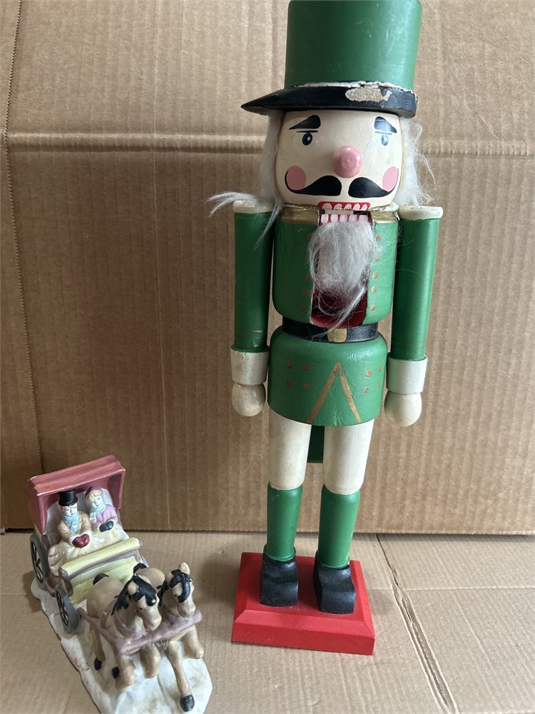 Green and white Nutcracker Porcelain,, horse buggy and carriage nutcracker 14" x 5