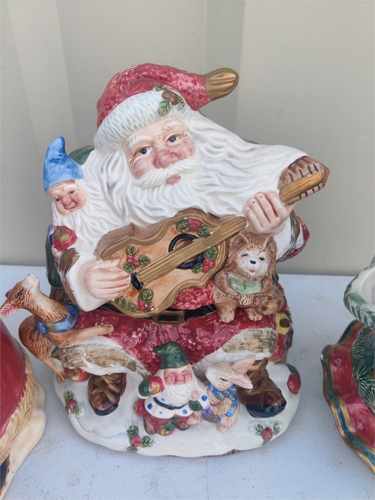 Two nice Santa cookie jars and one angel pitcher. All are in good condition. None of them have the original boxes.