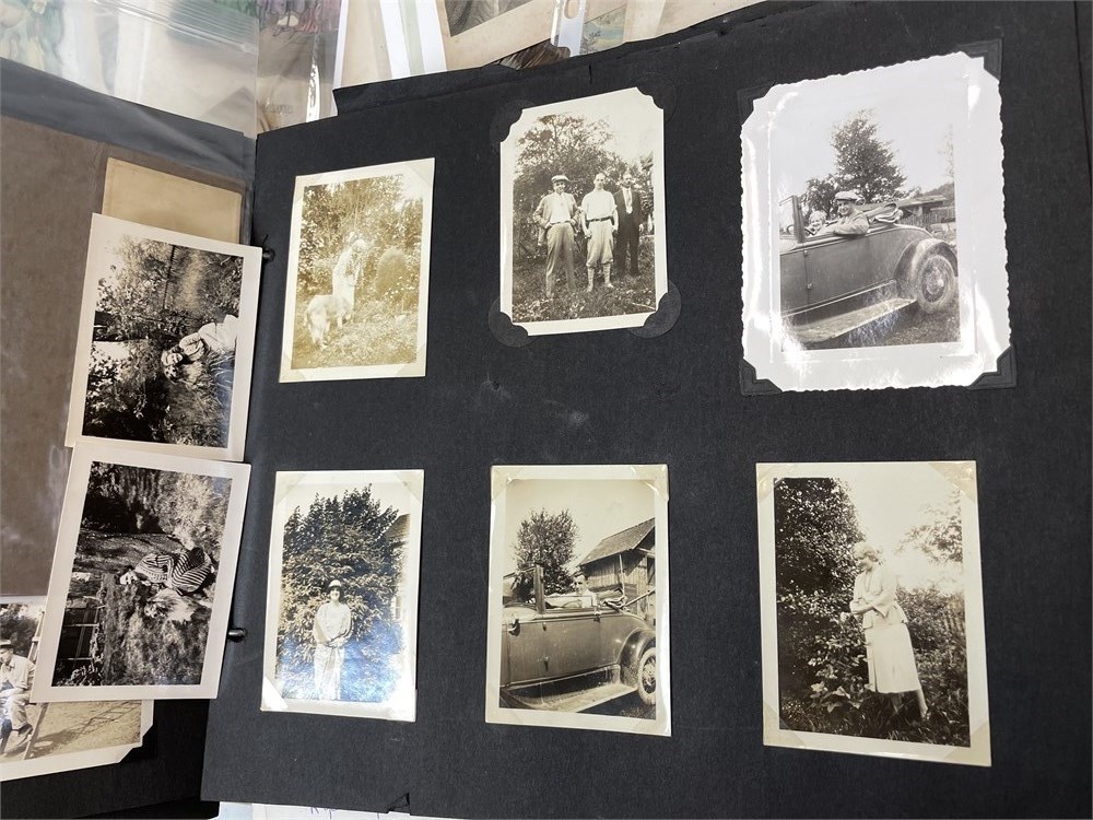 Collectible paper goods including quite a few fashion plates, mostly Victorian era.  Also ladies' journals, 1899 catalog, assorted photos and pictures and illustrations.  Also a photo album with several black and white pictures, and also a folder of a few Country Gentleman magazine artwork prints.