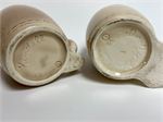Four mid-century ceramic mugs; two are alike.  Ranging from an elegant clothed woman to partially then fully nude.  All are signed “Kindell” and one includes "Dorothy" and “69”.  No chips or cracks.