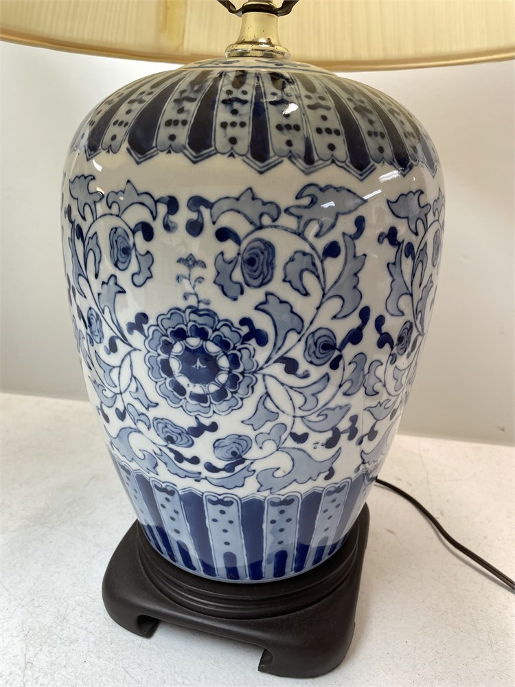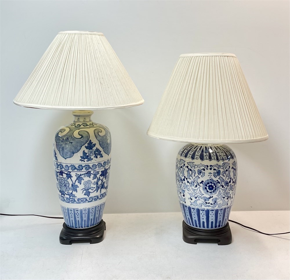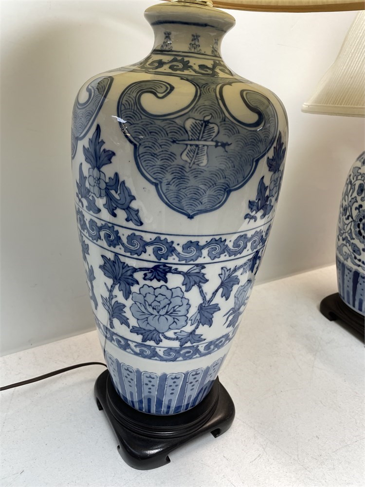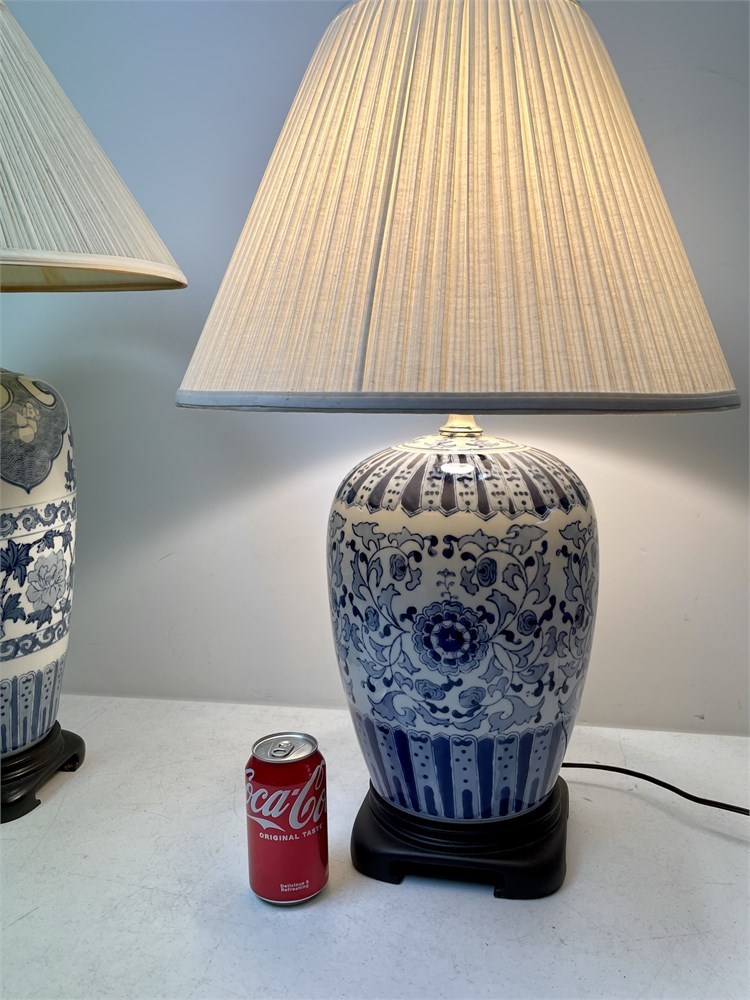 2 table lamps with coordinating designs and bases.  Good condition lamps; the shades are ok/average.  Both lamps work.