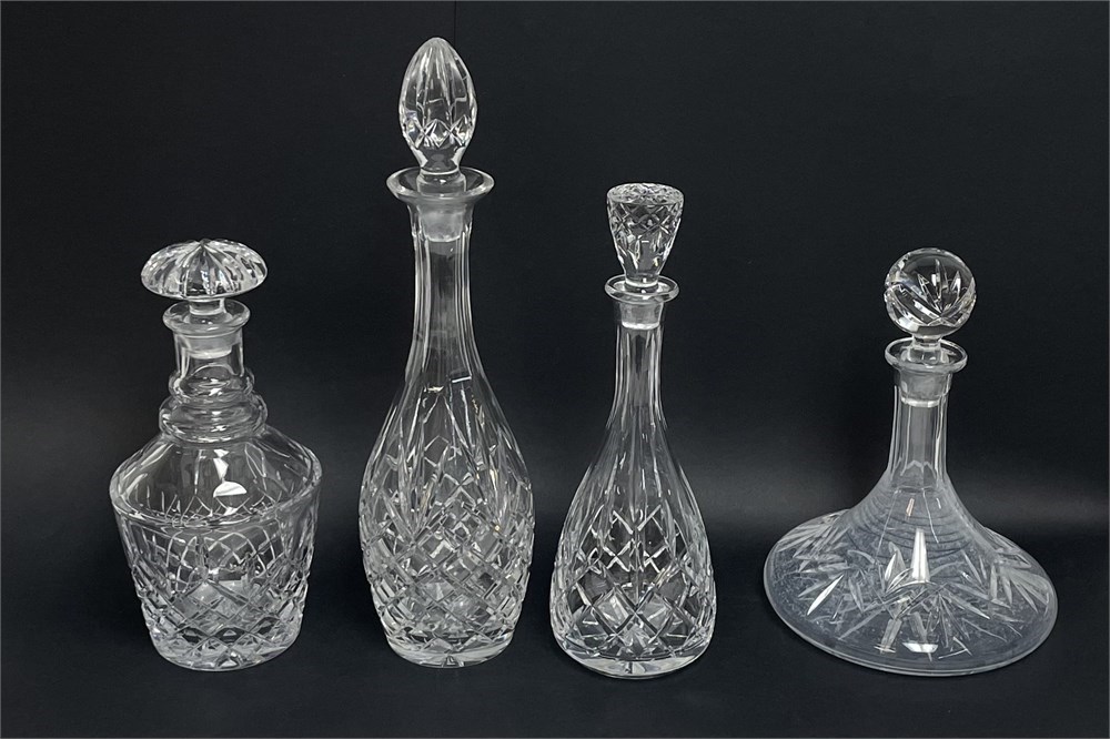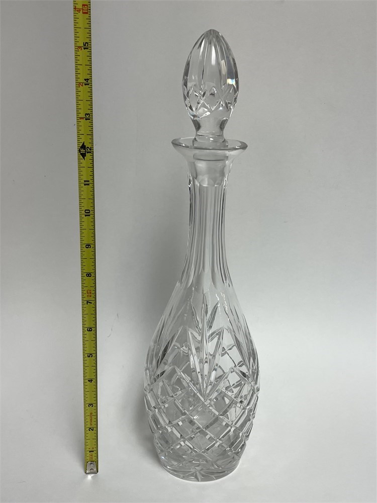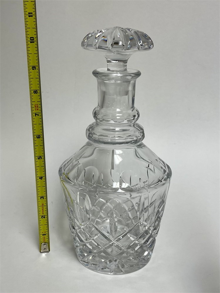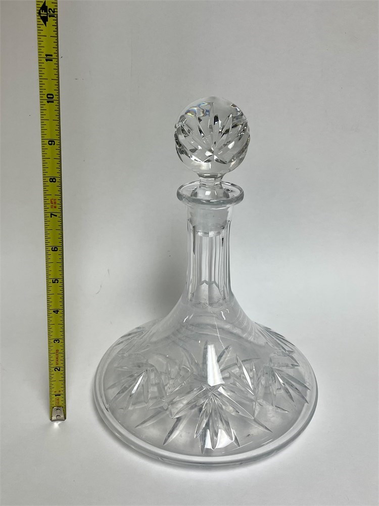An estate group; these have been used, but there are no chips or cracks.  However, the ship's decanter is very cloudy, and a couple of the others are a just little cloudy on the base inside.  None are signed.  These are all quality lead crystal, heavy, and the shortest one seems particularly nice.