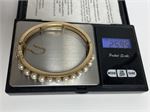 A classic pearl bracelet to add to your jewelry wardrobe.  Genuine pearls set in yellow gold, marked 14K.  The safety chain is detached.