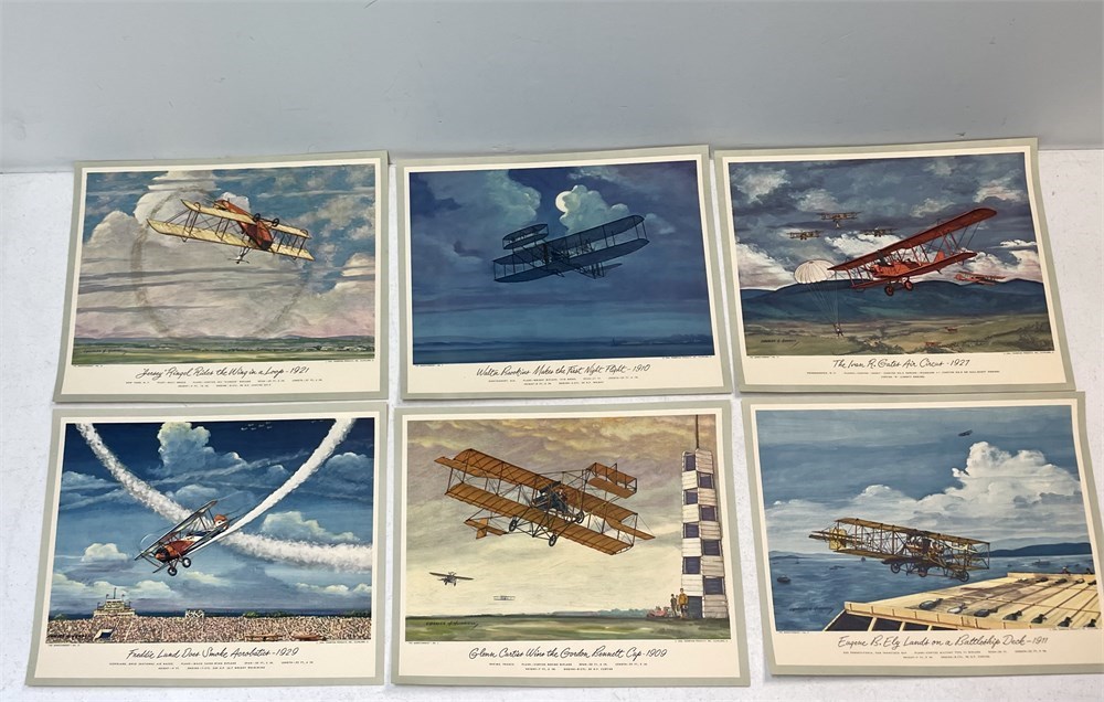 Charles H. Hubbell, an American artist commissioned by Thompson Products (later TRW Inc.), a maker of airplane parts in Ohio, to paint aircraft for its annual calendars.  In this lot are two sets of 12 lithographs as printed in the calendars for 1954 and 1955.  Several are military aircraft.