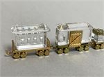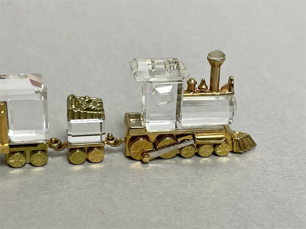 A miniature crystal train - engine, tender, boxcar, caboose - by Swarovski, with the swan symbol on the cow catcher.  The gold components move (boxcar door, engine wheels).  Good condition.  About 4" long.