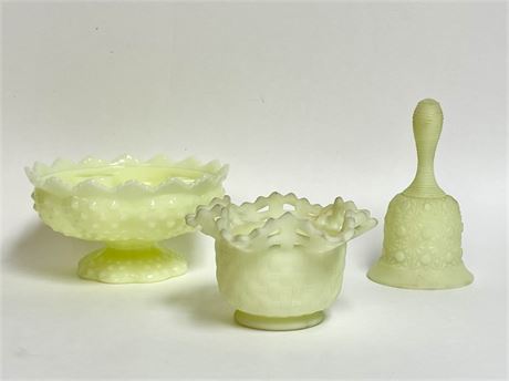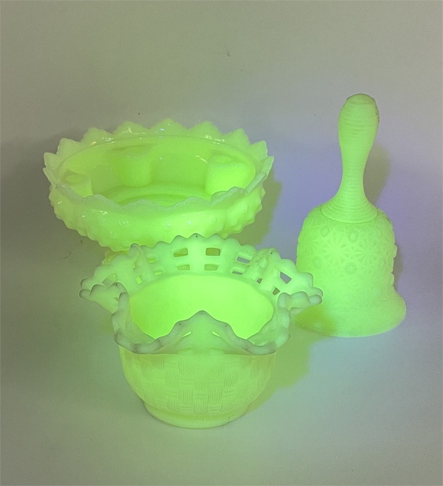 3 Fenton Custard/Uranium Glass Items, Glowing