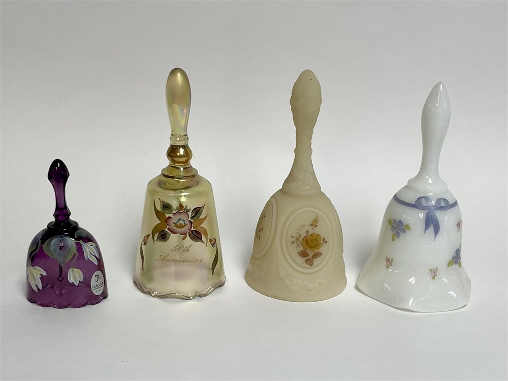 4 Fenton Hand Painted and Signed Bells