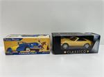 9 Christmas ornaments, mostly Hallmark, including a 1997 Hallmark Membership Kit set.  2 small collector cars in boxes.  3 vintage linen towels including Rodriguez (Australia images and koala Christmas), and a cute Rainbow Lorikeet.