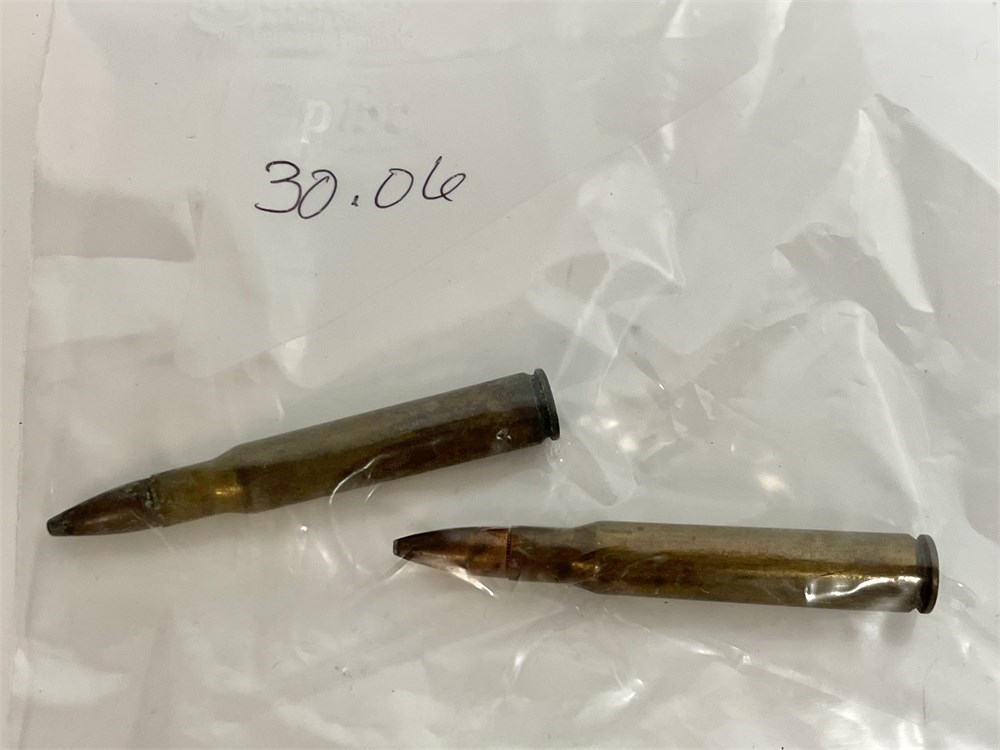Two bags as pictured, one has two 30.06 ammo, and the other has an uncounted amount of .22 cal short.