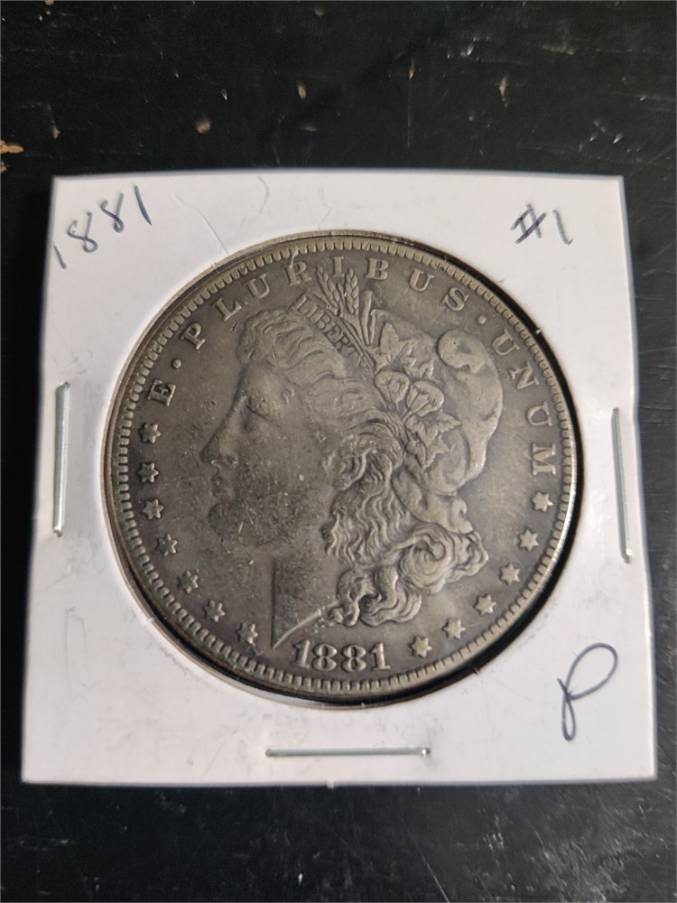 This is the first of three 1881 P Morgan silver dollars. $1 he's in good condition still with nice detail.