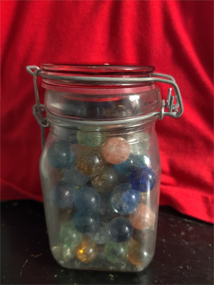 Nice small jar of vintage crackle glass marbles. There are approximately 100 marbles in the jar