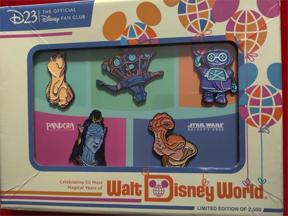 D23 Walt Disney World 50th Anniversary GALACTIC JOURNEYS Pin Set LE 2,500. Item is new in box Box has a couple of creases.