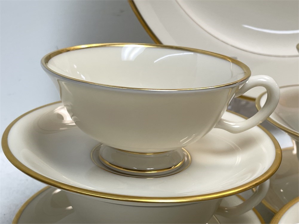 A well-kept set, nice condition with no damage found.  Mansfield is a versatile pattern by Lenox - cream colored with gold rims and trim.