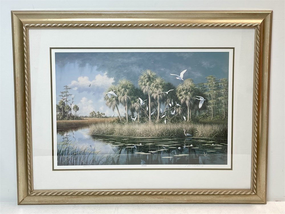 A large print by Englewood, Florida artist Ben Essenberg, known for realistic Florida landscapes and wildlife.  Signed and numbered, framed under glass, titled "Matinee."
