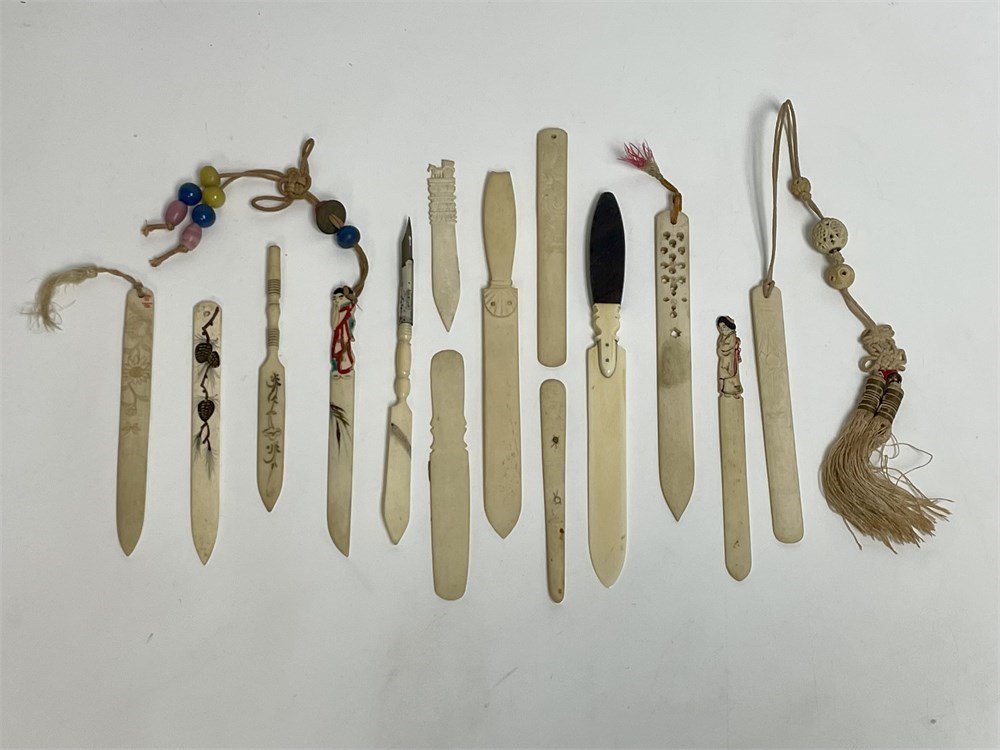 14 Carved Letter Openers & Bookmarks, Mostly Bone