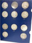 Collector book of U.S. silver Franklin halves, partially filled with various dates.  26 coins total.