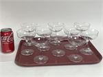 10 Champagne/Sherbet crystal glasses in Montaigne pattern by Baccarat, signed on the bottoms.  Approx. 5" tall, good condition, no chips or cracks on any.  Nice find as a large set of ten.