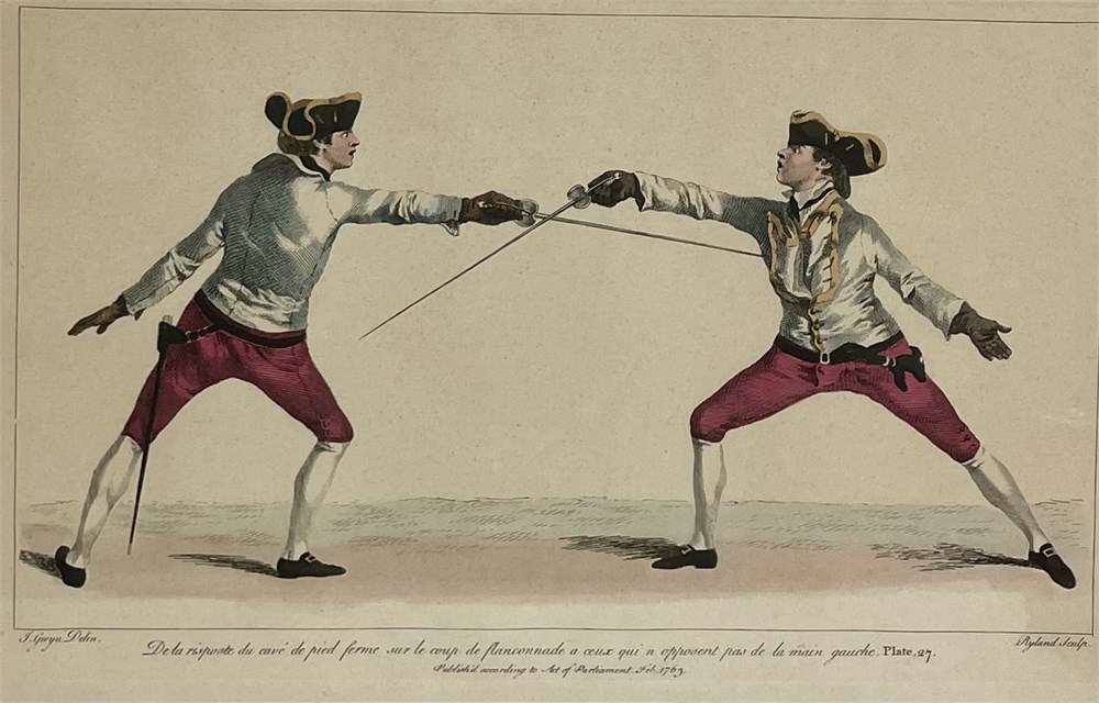 Antique Fencing Etching, Framed