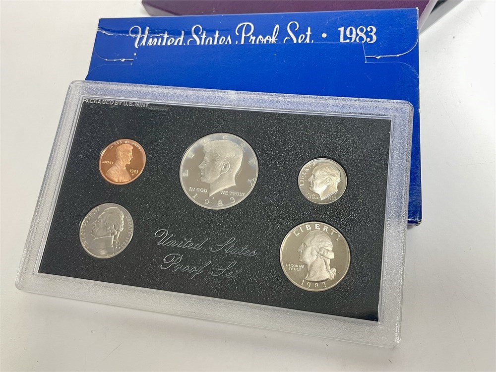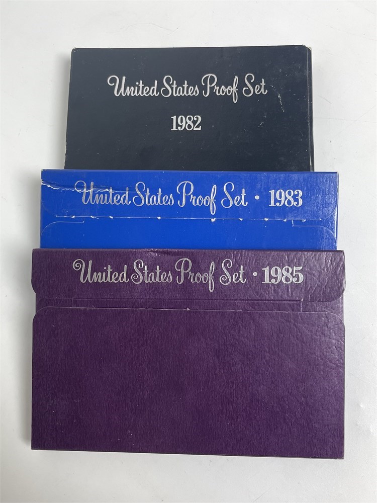 3 U.S. Mint Proof Sets: 1982, 1983, 1985