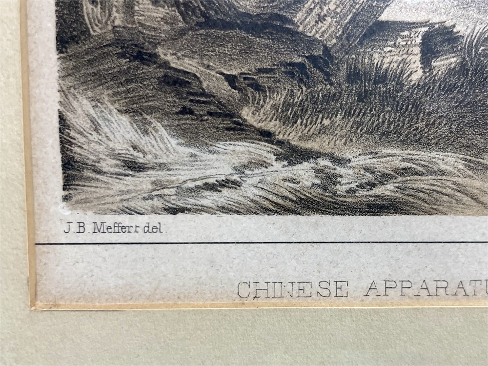 2 interesting antique Ackerman colored lithographs after J.B. Meffert: "Chinese Irrigating Machine Worked by Men" and "Chinese Apparatus for Grinding Beans, Bones, and Other Substances".  Good condition.