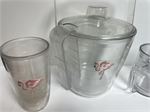Estate group, used condition, some seem newer, including the Tampa Bay Rays.  These are the classic insulated plastic Tervis cups that were made locally.  Also a flamingo ice bucket with lid and tongs.