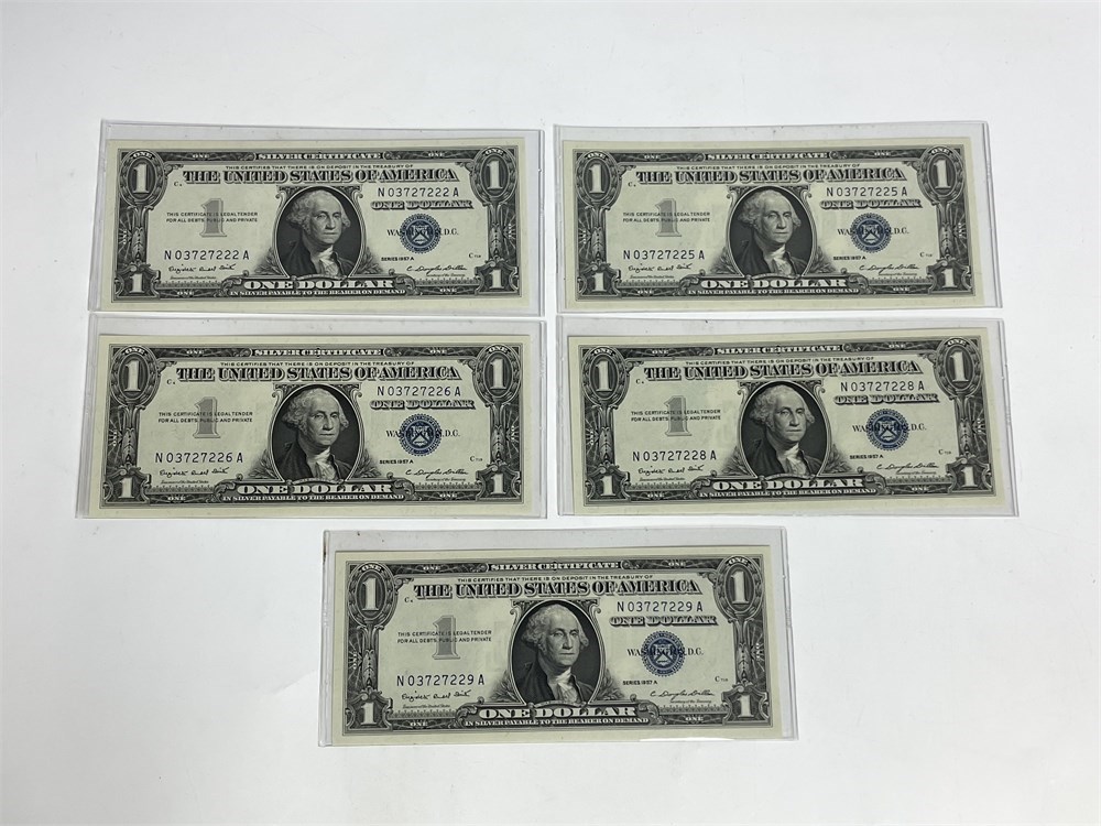 5 Silver Certificates Including 2 Consecutive Pairs