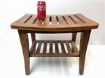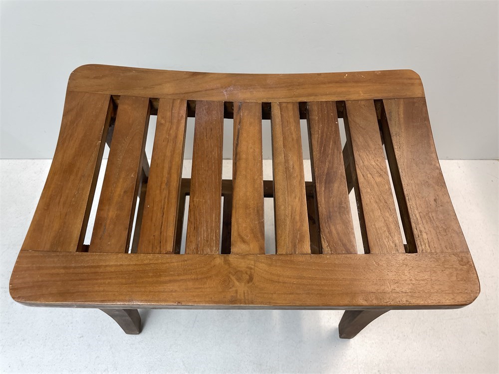 I believe this is teak wood.  It has been used in a shower.  Sturdy.