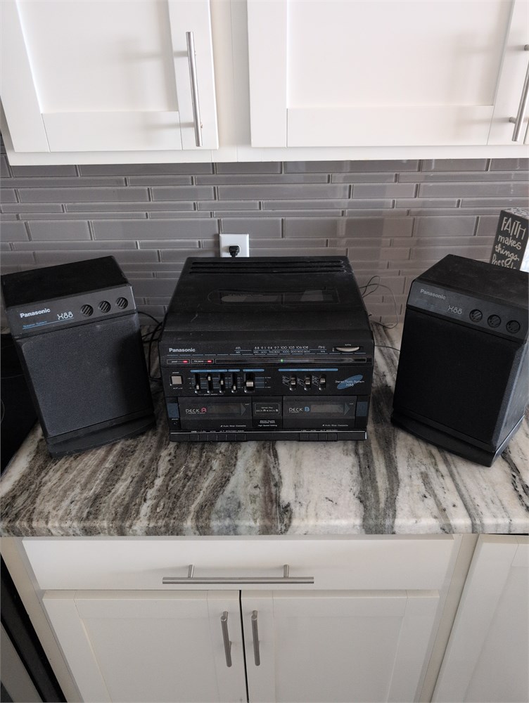 Consigner states this works fine, we plugged it in it did power up. Lights are on, turntable turns as it should, both cassette doors open and close as they should, that as far as we have tested it. This is a very rare vintage model from the 1990s. It is the x88 home stereo system, overall condition is very good for its age. Comes with all cords as pictured