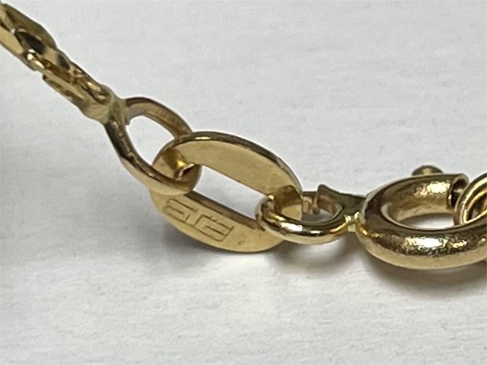 A fairly lightweight Italian gold chain which seems to glitter in the light, 30" long.  Marked 14K.