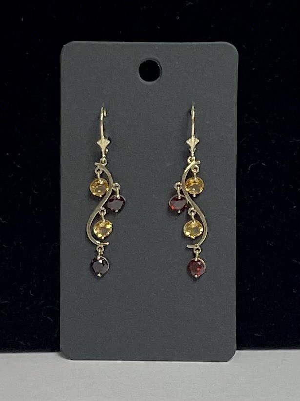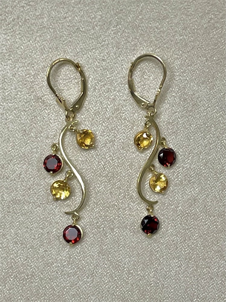 Citrine and Garnet Earrings, 14K Yellow Gold (3.3 g)