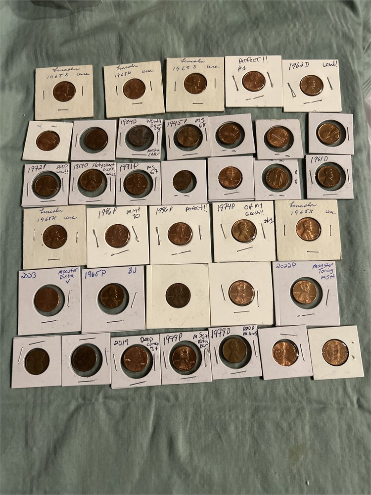 36 days separate pennies came from a life long collector. These coins are his grades and are not professionally graded.