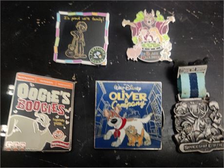 Lot of five loose Disney collectible pins.