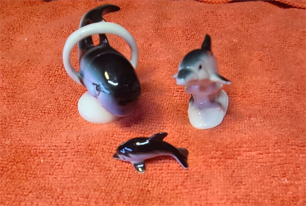 3 Vintage SeaWorld miniatures, 2 Dolphins and 1 Whale (S)
