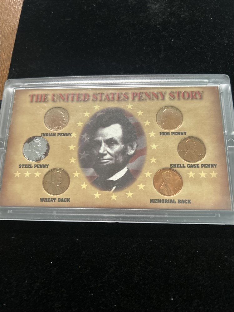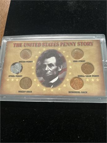 United States penny story Indian head penny 1903 steelpenny 1940 wheat penny 1956D 1909 penny memory back showcase penny